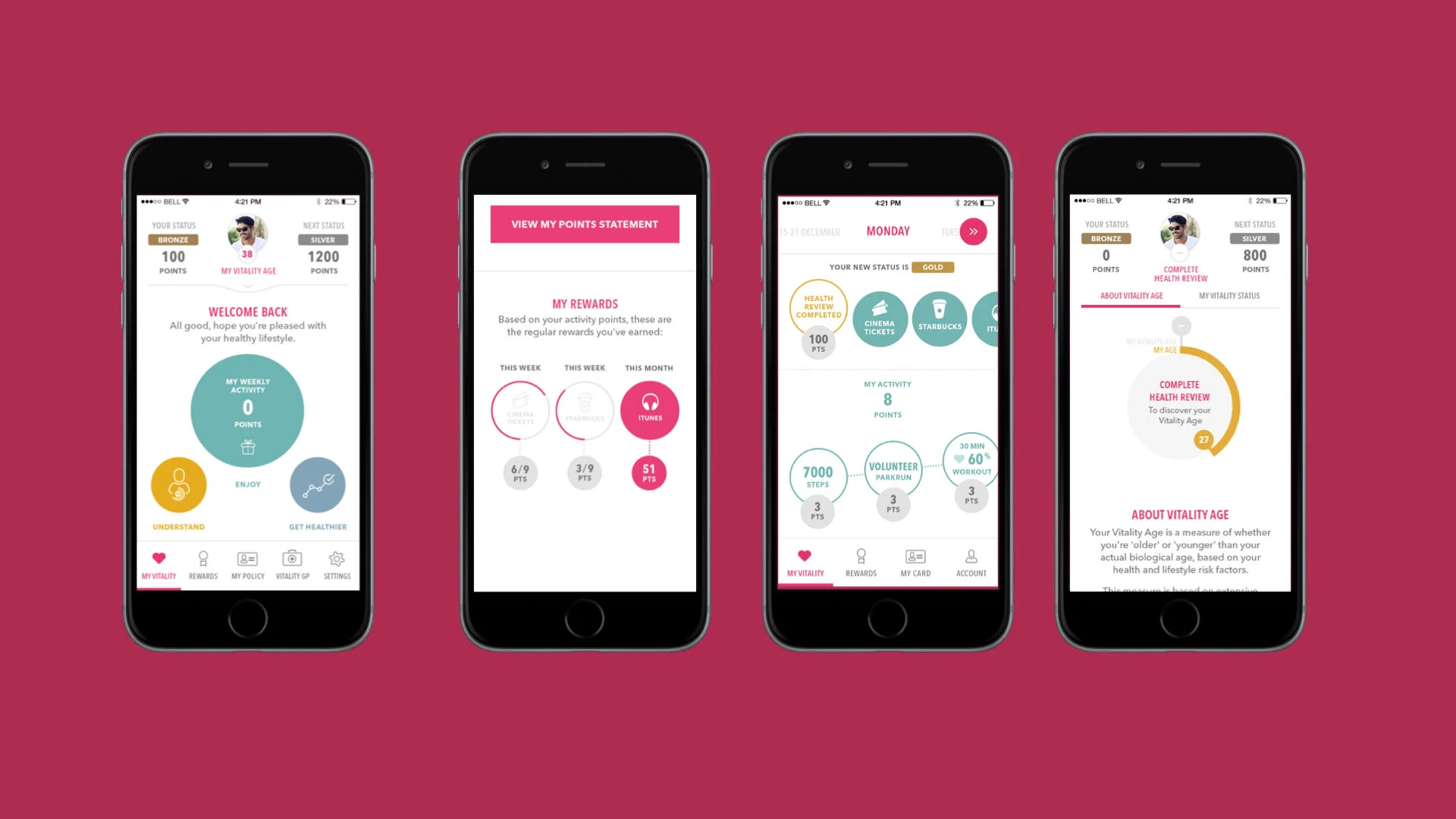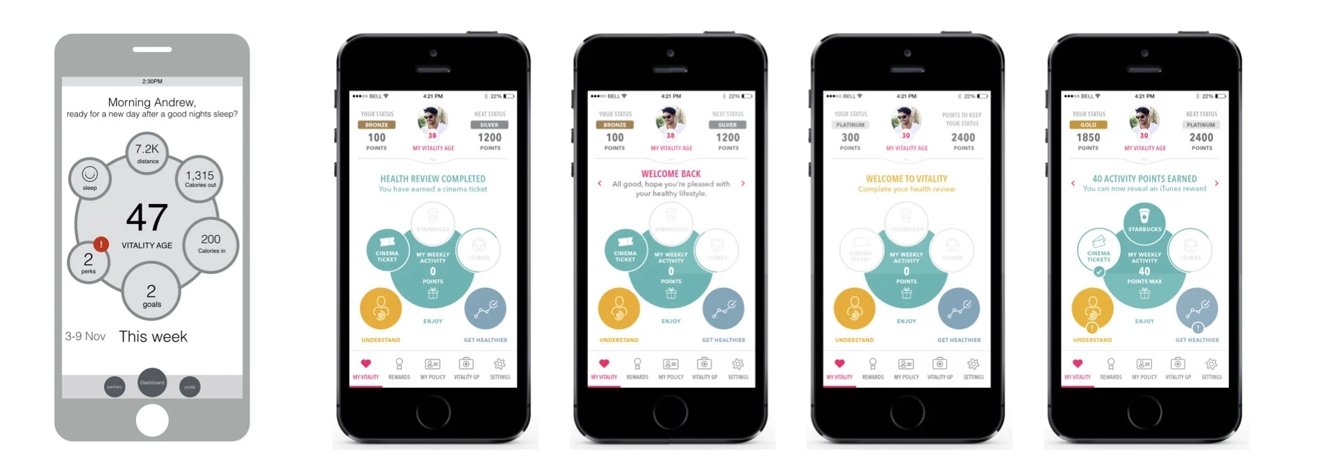 Your vitality age was different to your birth age. This age was worked out using a number of stats and facts about your health and lifestyle and the overall aim was to reduce your vitality age as this led to financial benefits such as cheaper health insurance premiums. We also used a levelling system of gamification which also unlocked exclusive benefits.
