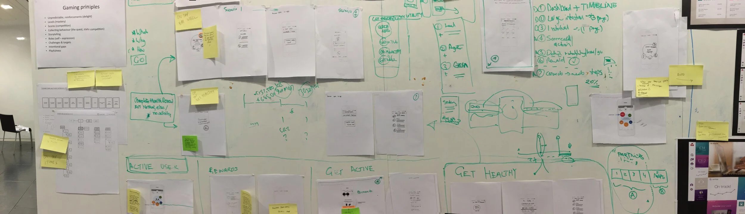 As a design team our process was to Research other experiences both directly and indirectly related to what we were doing. In many ways our experience was quite far away from insurance and much more closely linked to games, sports and health apps.